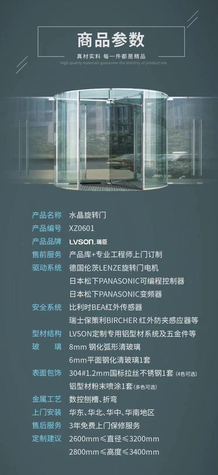 LVSON瑞臣|三翼中轴式旋转门XZ0302