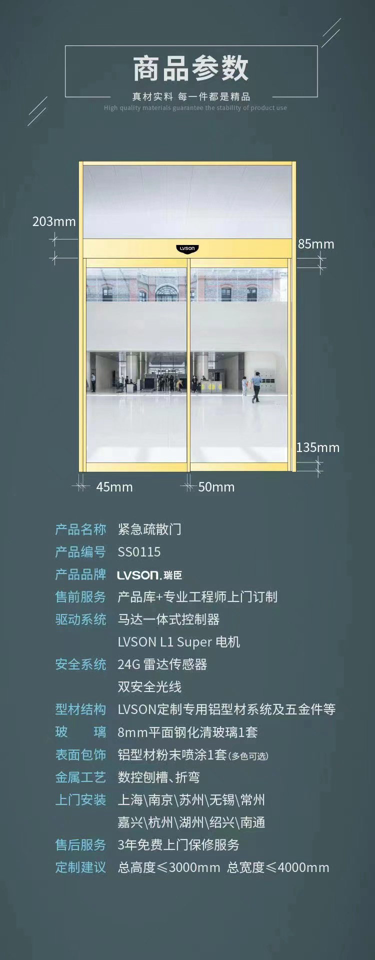 设计库+上门定制+LVSON Super自动门设备+安全防夹系统+疏散功能五金+专用铝型材结构+钢化玻璃+安装制作+2年上门售后服务